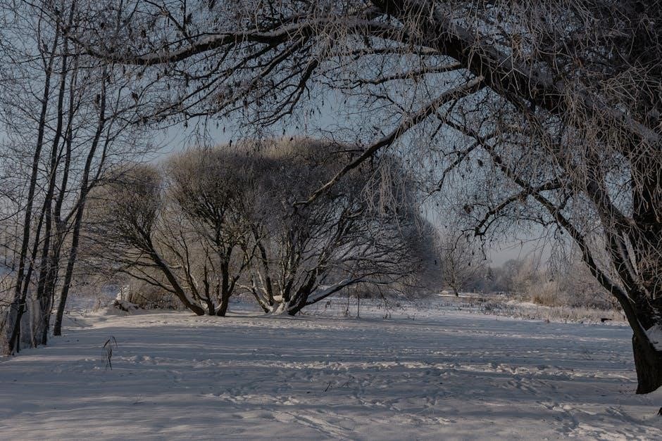 Poems like “Stopping by Woods on a Snowy Evening” exemplify this‚ where the serene yet isolating winter landscape mirrors internal contemplation․ PDF access allows close reading‚ revealing how Frost uses imagery of woods‚ fields‚ and seasons to explore themes of solitude‚ beauty‚ and the cyclical nature of life․ The detailed descriptions within these PDF texts invite readers to immerse themselves in the pastoral settings that define Frost’s poetic vision․